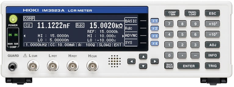 HIOKI IM3523A - laboratoryjny miernik miernik RLC, 40 Hz-200 kHz, 100 mΩ-100 MΩ, ±0,05%, 2 ms, Z, Y, θ, X, G, B, Q, Rdc, Rs (ESR), Rp, Ls, Lp, Cs, Cp, D (tgδ), LAN