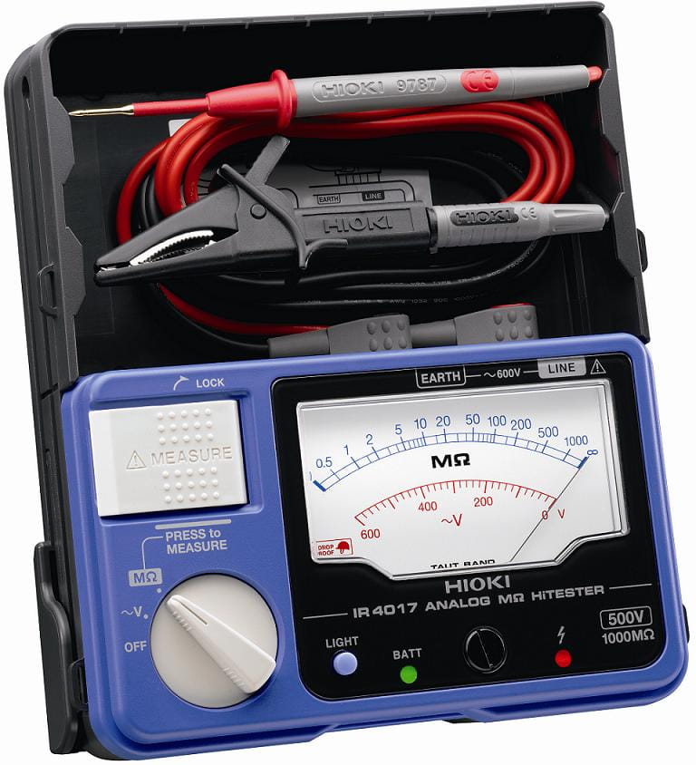 HIOKI IR4017-20 - jednozakresowy miernik rezystancji izolacji z odczytem analogowym, 500 V DC, 1000 MΩ, ACV do 600 V