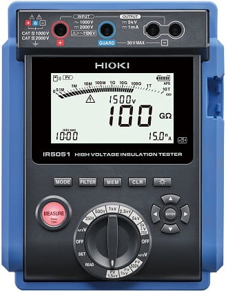 HIOKI IR5051-90 - miernik rezystancji izolacji 250 V-5 kV DC, 10 TΩ , test rezystancji PV, prąd upływowy, pojemność, PI, DAR, DD, pamięć, IP65, interfejsy USB i Bluetooth®, adapter bezprzewodowy Z3210 w komplecie
