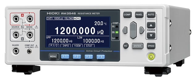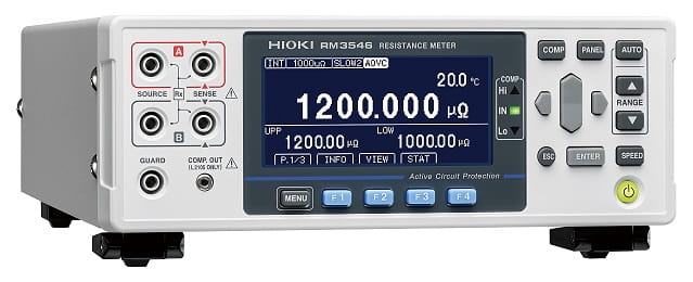 RM3546 jest miernikiem rezystancji optymalizowany do sprawdzania rezystancji zgrzewów cel i i modułów akumulatorowych. Przyrząd obsługuje stabilnie pomiary małych rezystancji wykonywane krótko po sporządzeniu zgrzewów, gdy złącze jest nadal chłodzone, a na wskazania rezystancji mają wpływ zmiany temperatury, rozbudowane okablowanie i interfejsy wielostykowe na ścieżce rezystancyjnej. RM3546 zawiera też aktyny układ ochrony do 60 V DC zapewniający bezpieczny pomiar rezystancji w trakcie serwisowania modułów akumulatorowych.