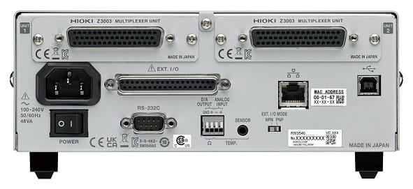 Do aplikacji wymagających więcej niż 20 kanałów można natomiast skonfigurować RM3546 w kombinacji z systemem multipleksera SW1002 HIOKI, który umożliwia uzyskanie w trybie czteroprzewodowym maksymalnie 132 kanałów.